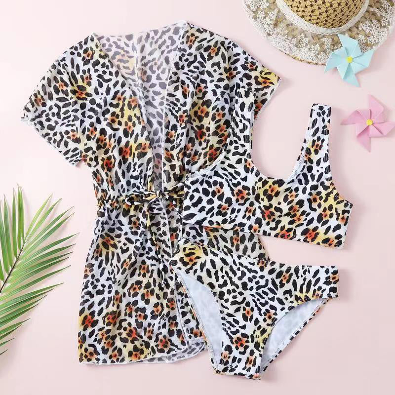 Set coordinato da donna a stampa leopardata, composto da tre pezzi