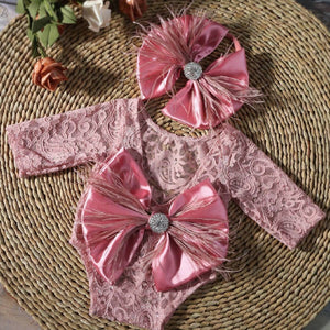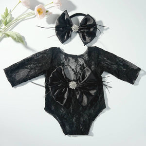 Set Fotografico Neonata Body in Pizzo e Maxi Fiocchi con Strass