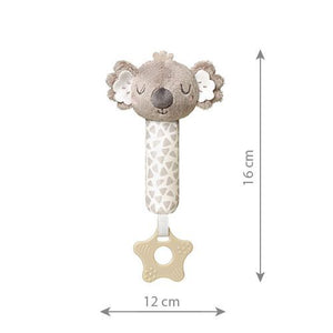 Ecco il morbido e grazioso squeaker Koala Coco. Perfetto per coccolare e confortare. Basta premere delicatamente il giocattolo per sentire un allegro squittio. Le morbide orecchie stimolano la presa. E i motivi geometrici attraggono l'occhio del bambino. Koala ha anche un massaggiagengive che aiuterà il piccolo durante la dentizione.