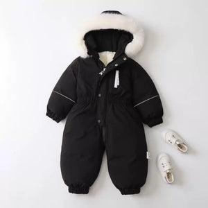 Proteggi il tuo piccolo dal freddo con la nostra tutina invernale imbottita per neonato, calda e avvolgente. Realizzata in tessuto resistente e foderata internamente per garantire il massimo comfort, è dotata di cappuccio con bordo in pelliccia morbida che dona un tocco elegante e raffinato.