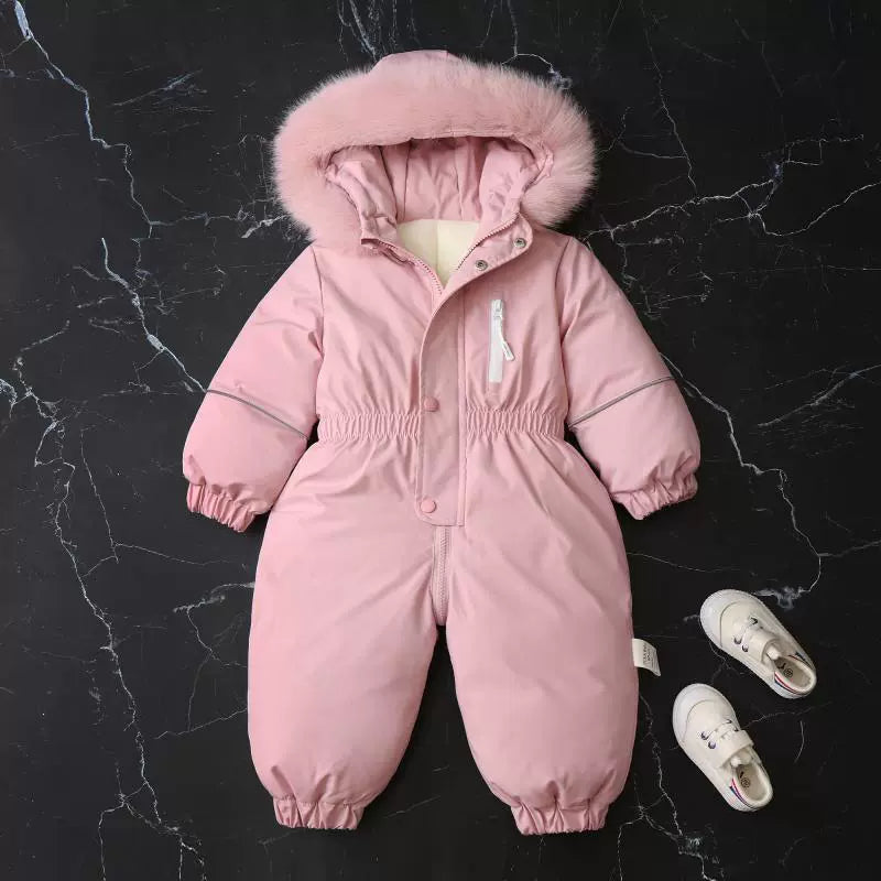 Tutina Invernale Neonato Imbottita con Cappuccio in Pelliccia