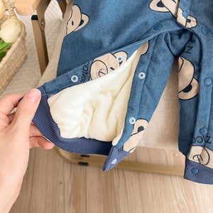 Tutina Invernale Neonato in Jeans Morbido con Interno in Pile Orsetto