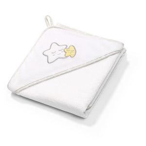 La toalla de rizo con capucha es perfecta desde el primer baño. Está confeccionado en 100% algodón de alta calidad, esponjoso y suave. La capucha presenta un diseño universal y suave con aplicación que hace que el producto sea adecuado tanto para niños como para niñas. Nuestra toalla con capucha ofrece a la suave piel de su bebé una protección eficaz contra el frío.