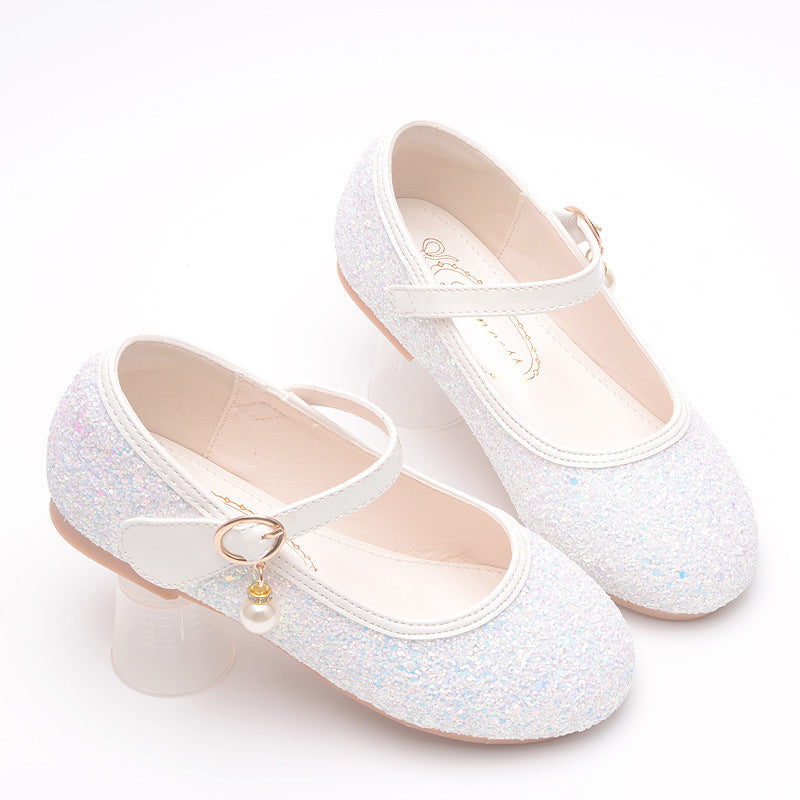 Scintillanti e super fashion, queste ballerine glitterate sono perfette per le piccole amanti dello stile! Disponibili in quattro colori brillanti — argento, bianco, azzurro e rosa arcobaleno presentano un comodo cinturino a strappo con dettaglio a cuore e charm con perla pendente. La suola antiscivolo garantisce stabilità ad ogni passo, mentre l’interno morbido assicura comfort anche per un uso prolungato. Ideali per feste, compleanni o semplicemente per sentirsi una principessa ogni giorno!