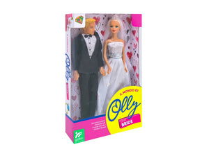 Viva gli sposi! accompagna le nostra fashion doll preferita olly all'altare nel loro giorno più bello. lui elegantissimo nel suo completo nero, e lei con un meraviglioso lungo abito bianco ed un bouquet di rose alla mano. grandi felicitazioni ai novelli sposi. età 36+ mesi.