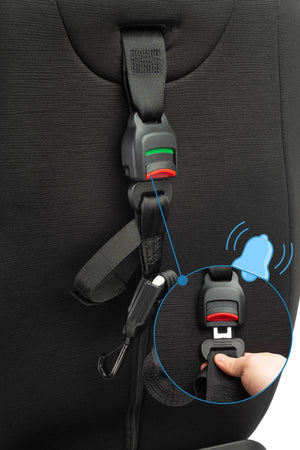 • Cinturones de seguridad de 5 puntos con cómodo ajuste de longitud y alarma audible