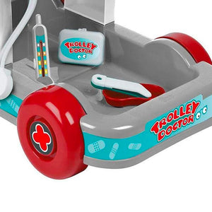 Divertiti un mondo al gioco del dottore con questo fantastico trolley carrello da Medico. Questo bellissimo carrello da medico è realizzato interamente in plastica dura di altissima qualità ed è fornito di 2 scomparti portaoggetti, ruote e manico per un facile trasporto. All'interno della confezione troverai tantissimi accessori medicali come lo stetoscopio, il termometro, siringhe e tanto altro ancora. Cura i tuoi pazienti con questo bellissimo carrello da medico per Bambini. Età consigliata: 3+ anni