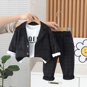 Completo Elegante Bimbo - Giacca Quadrettata con Pantaloni e T-shirt