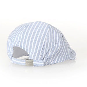Un tocco di eleganza senza tempo per il tuo piccolo! Questa coppola a righe azzurre e bianche è perfetta per completare outfit estivi da cerimonia o per un look casual-chic. Realizzata in cotone leggero e traspirante, garantisce comfort e stile anche nelle giornate più calde.