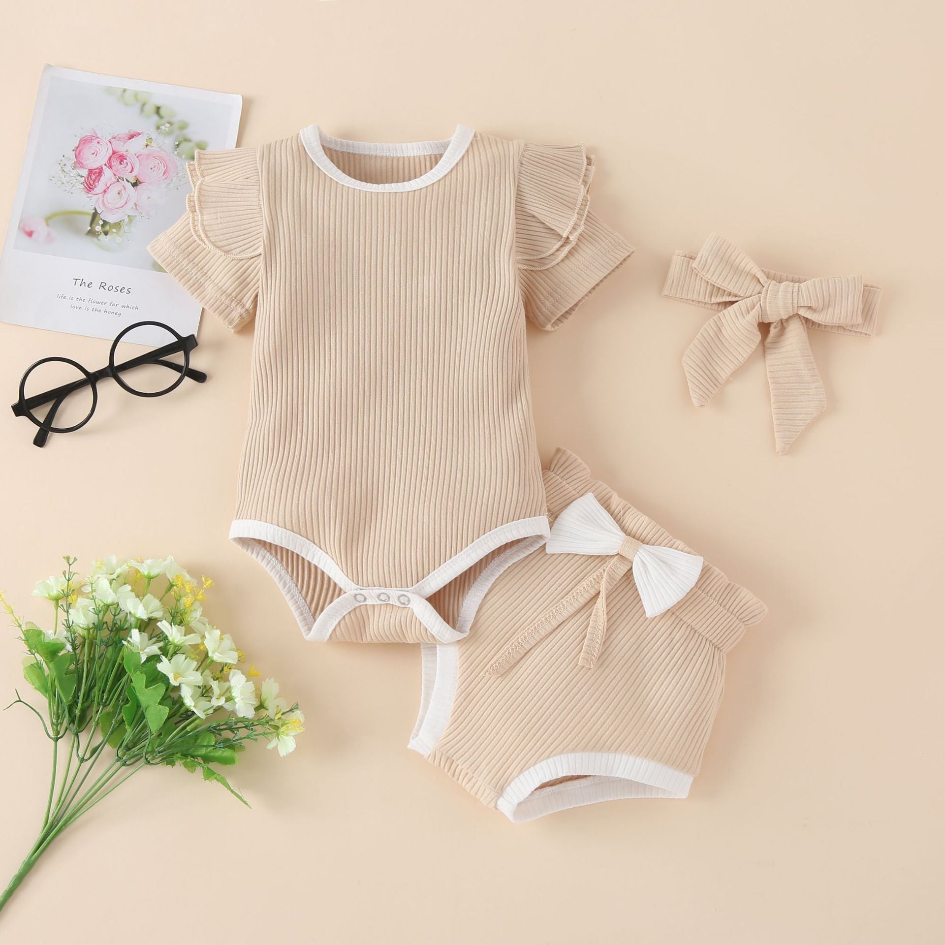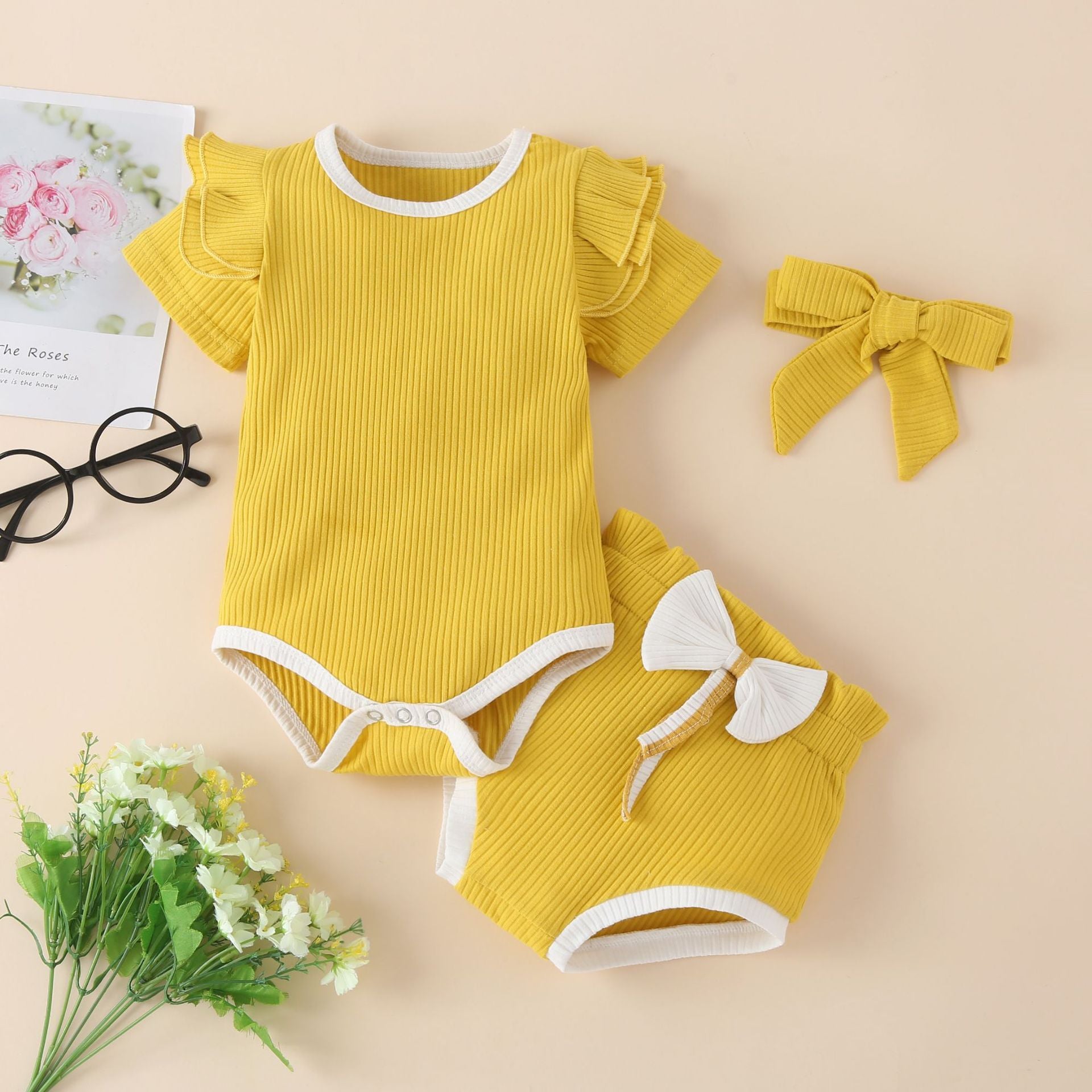 Aggiungi un tocco di colore e stile al guardaroba della tua bambina con questi body a maniche corte, disponibili in un set con fasce coordinate. Caratterizzati da tonalità vivaci come giallo, rosso, rosa e beige, questi body sono perfetti per ogni occasione, garantendo comfort e versatilità.