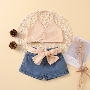 Home Set in Colore Beige Bimba pantaloncino, maglietta, cintura/fascia