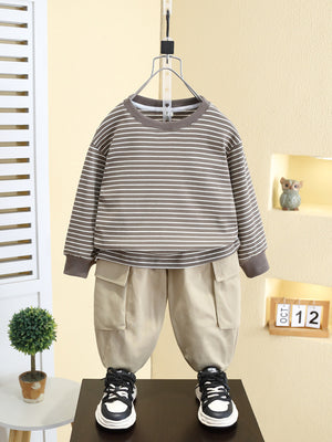 Home Set 3 Pezzi Bambino – Giacca con Cappuccio, Maglia a Righe e Pantaloni Cargo