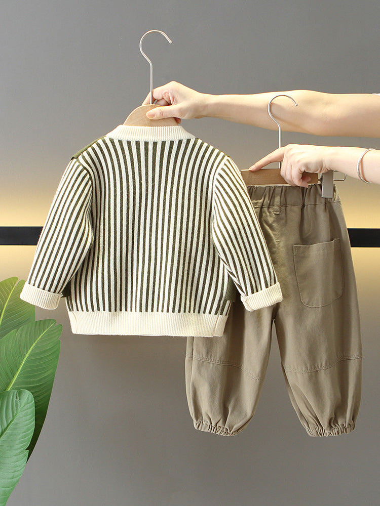 Set 3 pezzi bambino – Maglietta, cardigan a righe e pantaloni -2 varianti colore