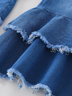 Rendi unica la tua bambina con questo set chic e alla moda, composto da un top monospalla a costine e pantaloni a zampa in denim con doppio volant. Perfetto per ogni occasione speciale o per un look casual ma elegante, questo completo unisce comfort e stile in un design moderno e irresistibile.