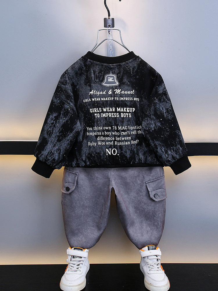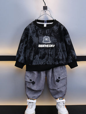 Set Bambino 2 Pezzi – Felpa a Effetto Marmorizzato con Pantaloni Cargo