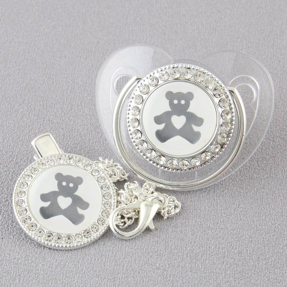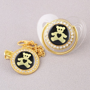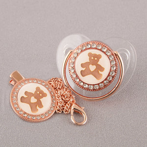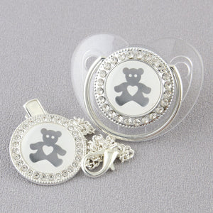 Set Ciuccio 6-12 mesi con Catenella e Copri-Polvere – Decorato con Cristalli e Orsetto