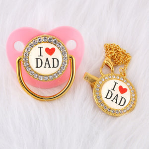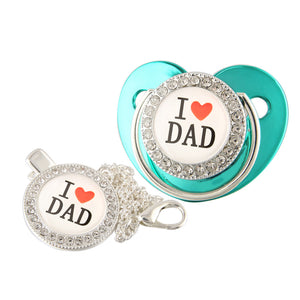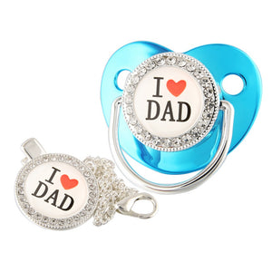 Set Ciuccio 6-12 mesi con catenella "I ❤️ Dad" – Vari colori