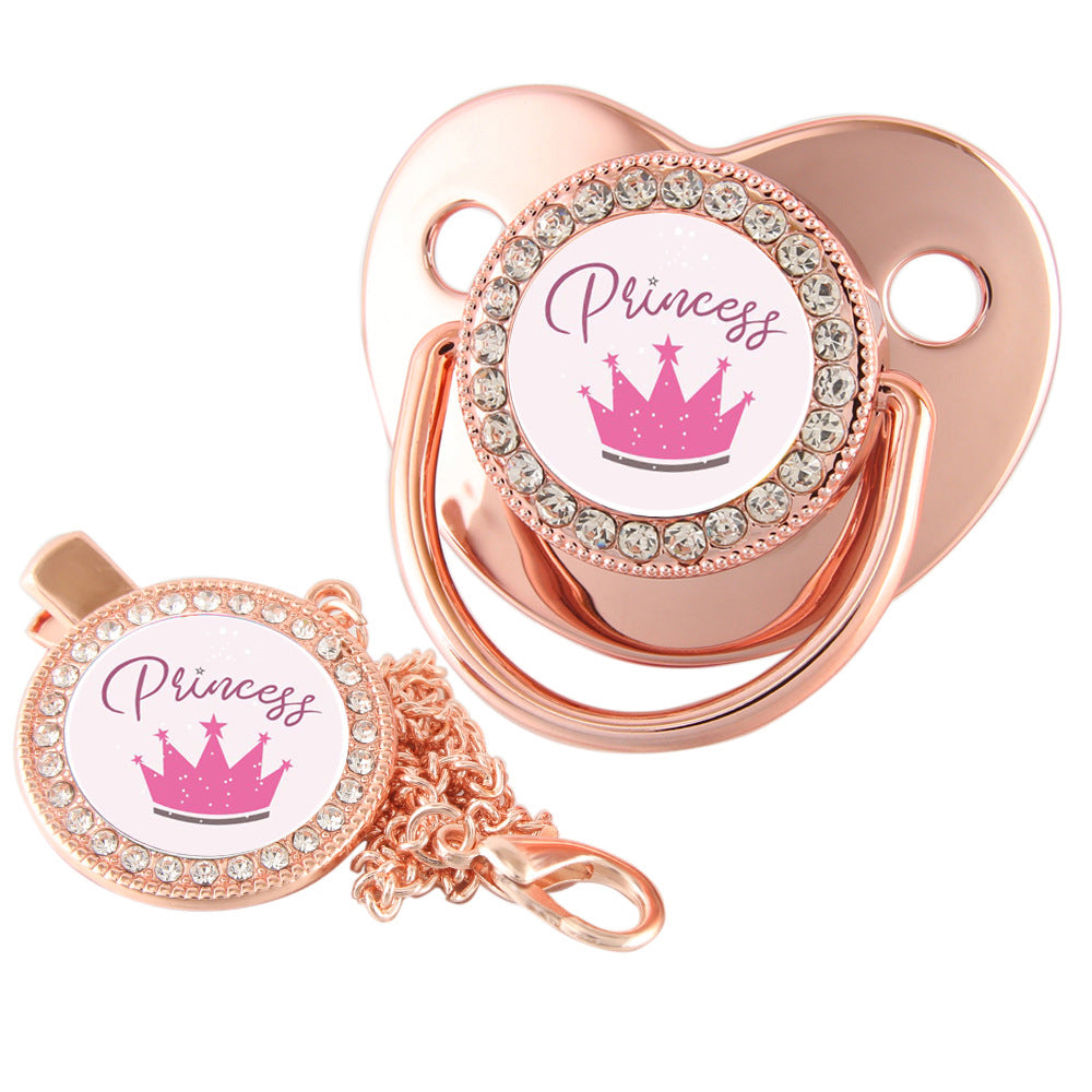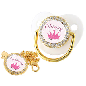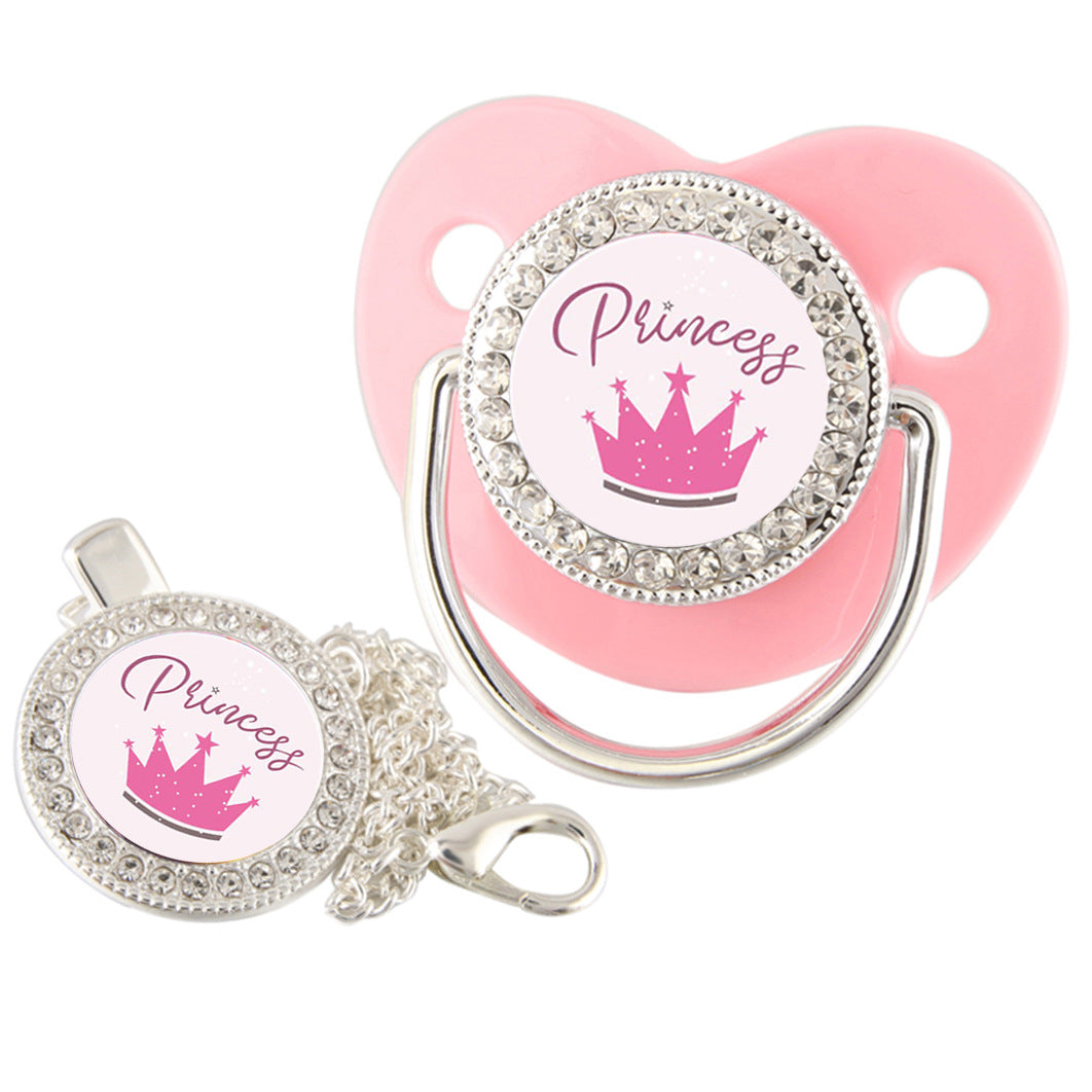 Home Set Ciuccio + Clip con Catena "Princess" Decorato con Strass 0-6 mesi