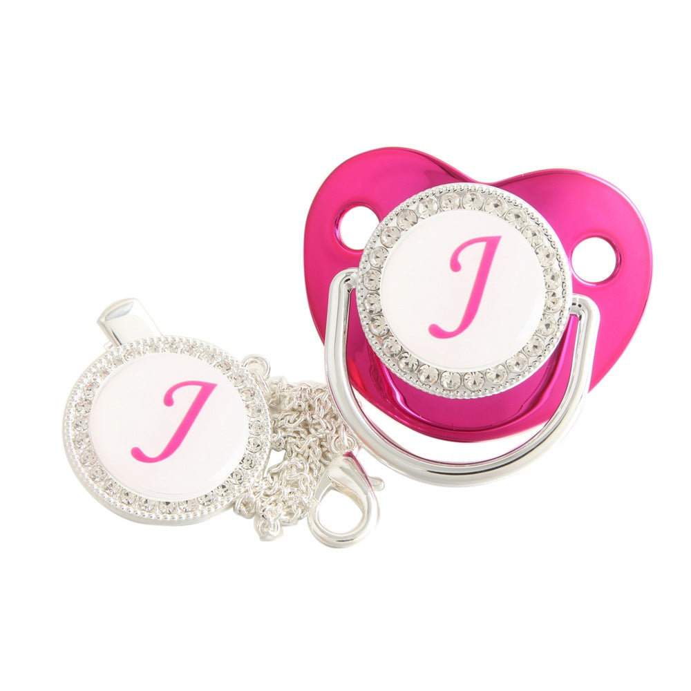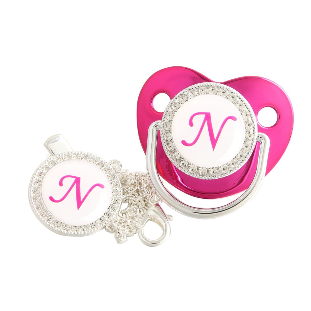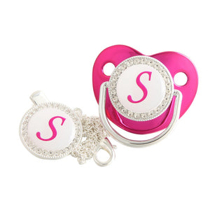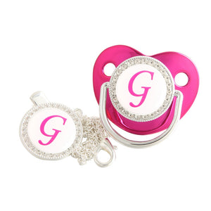 Set Ciuccio Luxury Fucsia e argento con Clip – Personalizzato con Iniziale (6-12 mesi)