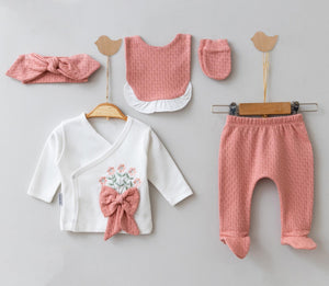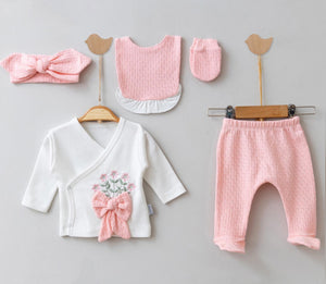 Conjunto de Ropa Bebé Niña 5 piezas - Rosa y Blanco