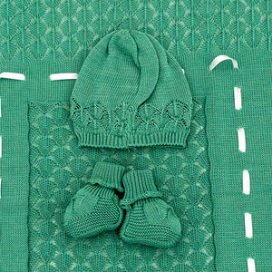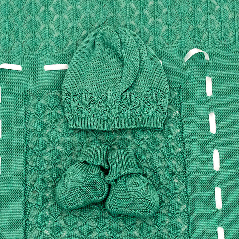 SET NEONATO MADE IN ITALY COMPOSTO DA COPERTINA, VESTINA, CAPPELLINO, SCARPETTE E BAVETTA