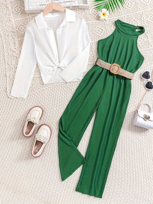 Set Elegante Bambina Tuta con Cintura e Camicia Bianca vari colori