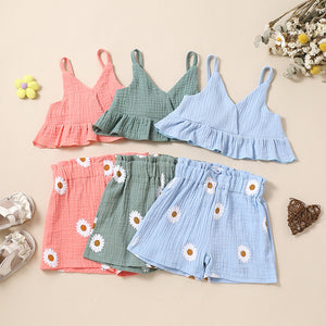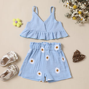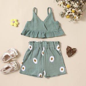 Set Estivo Bambina Top con Volant + Shorts con Margherite