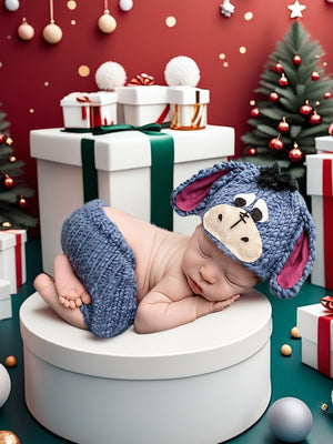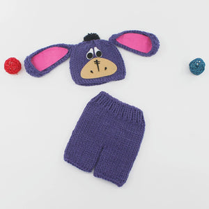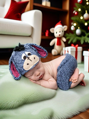 Cattura i momenti più dolci del tuo neonato con questo adorabile set fotografico in maglia ispirato a un simpatico asinello! Realizzato a mano con filato morbido e delicato sulla pelle, il set include un cappellino con orecchie e dettagli ricamati, abbinato a un pantaloncino coordinato. Perfetto per servizi fotografici newborn, baby shower o come idea regalo unica e originale.
