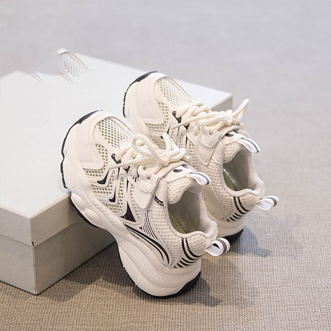 Queste sneakers bianche per bambino sono perfette per ogni giorno! Realizzate con materiali leggeri e traspiranti, presentano una tomaia in mesh che garantisce massima aerazione anche nelle giornate più calde. Il design sportivo è arricchito da dettagli neri e una suola robusta antiscivolo per una camminata sicura. I lacci in tessuto offrono una chiusura regolabile per una calzata comoda e stabile. Ideali per la scuola, il tempo libero o lo sport.