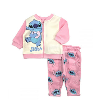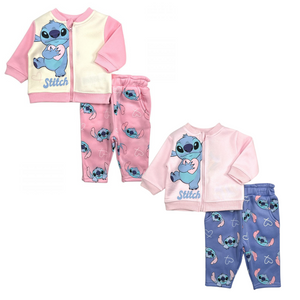 Questo adorabile completo ispirato a Stitch è perfetto per un look pratico e coccoloso! Il set include una giacca con zip decorata da una dolce stampa di Stitch e pantaloni elasticizzati con una vivace fantasia a tema cuoricini. Disponibile in due varianti: giacca bicolore bianca e rosa con pantaloni rosa, oppure giacca rosa con pantaloni azzurri. Realizzato in morbido tessuto caldo, è ideale per giornate fresche o momenti di gioco, offrendo massimo comfort e libertà di movimento. Un outfit irresistibile per i piccoli fan di Stitch!
