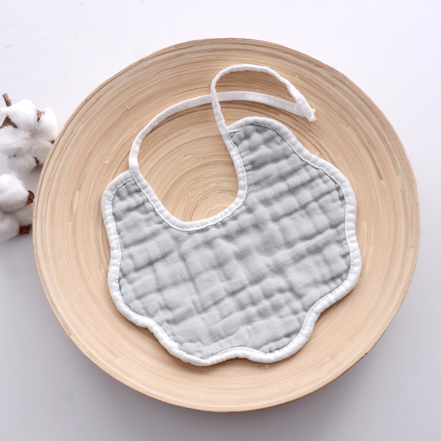 Questo bavaglino in mussola di cotone è perfetto per i primi pasti o la dentizione, con un design a forma di fiore che aggiunge un tocco delicato e moderno.