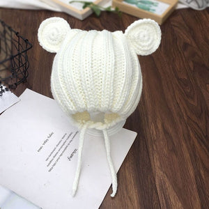 Morbido cappellino lavorato a maglia con simpatiche orecchiette da orsetto.