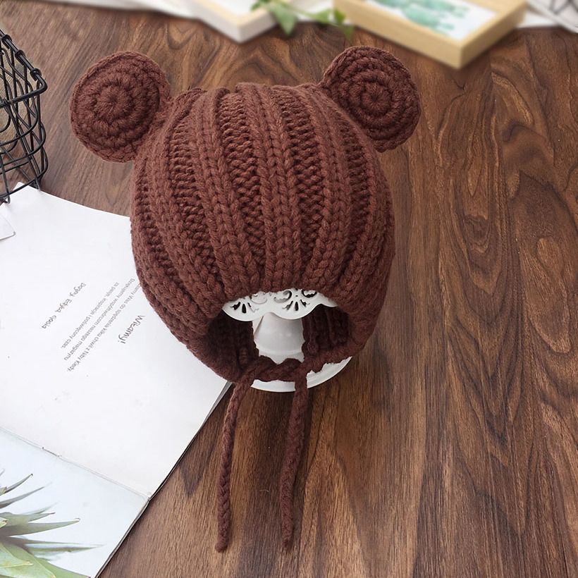 Cappellino Neonato/a Neutro Invernale a Maglia con Orecchie – Disponibile in Vari Colori