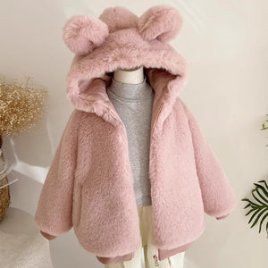 Cappotto in peluche con cappuccio orecchie – Bambina (4 colori)