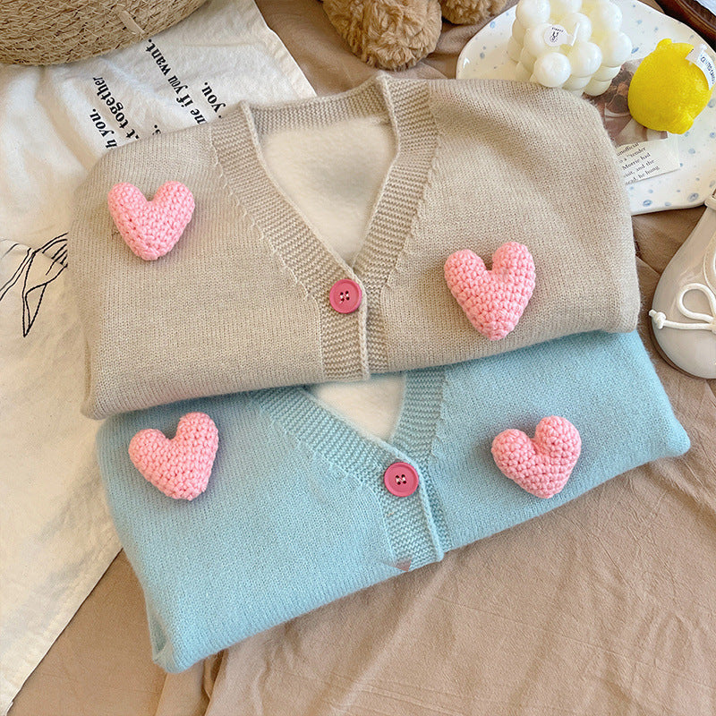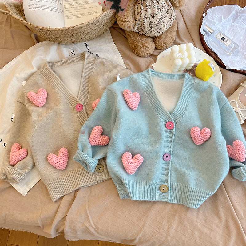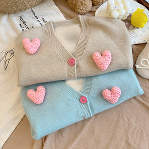 Cardigan Bambina con Cuori 3D – Maglioncino Morbido in Maglia