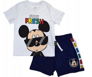 Un grazioso completo in cotone per bambino. Maglietta e pantaloncini con un'applicazione della fiaba Topolino - Mickey. Piacevole al tatto, perfetto per l'estate. Adatto al gioco quotidiano. Originale su licenza.