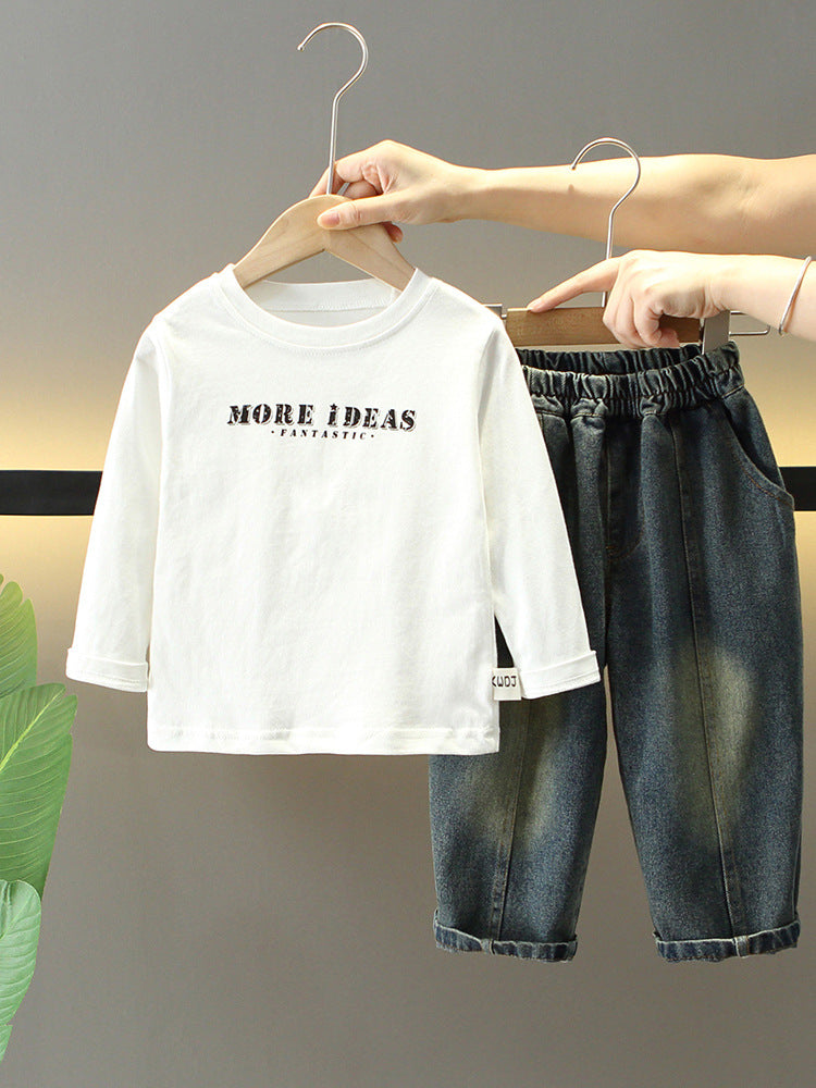 Home Completo bimbo in denim elasticizzato con giacca e pantaloni – casual e resistente