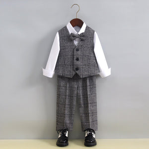 Il massimo dello stile per il tuo piccolo gentleman! Questo completo da cerimonia per bambino, dal design classico e sofisticato, è perfetto per matrimoni, battesimi e occasioni speciali. Il set include 4 pezzi: