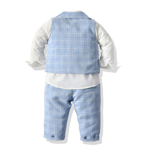 Dai al tuo piccolo un look sofisticato con questo raffinato completo da cerimonia! Perfetto per battesimi, matrimoni, compleanni e occasioni speciali, questo set include una camicia bianca a maniche lunghe, un gilet abbinato con bottoni in stile classico, pantaloni coordinati e un adorabile papillon. Il tessuto leggero e traspirante assicura comfort e libertà di movimento per il tuo bimbo durante tutta la giornata.