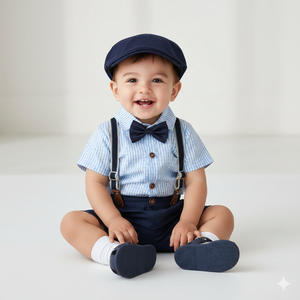Stupendo completo estivo elegante per bimbo, perfetto per cerimonie, battesimi o eventi speciali. Il set include: