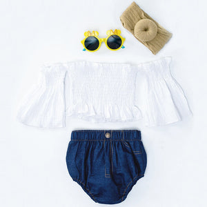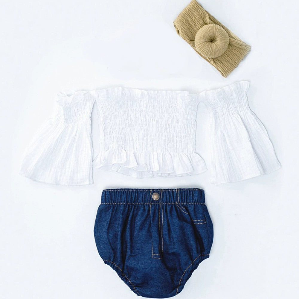 Completo Estivo Bambina con Top a Spalle Scoperte e Shorts in Denim