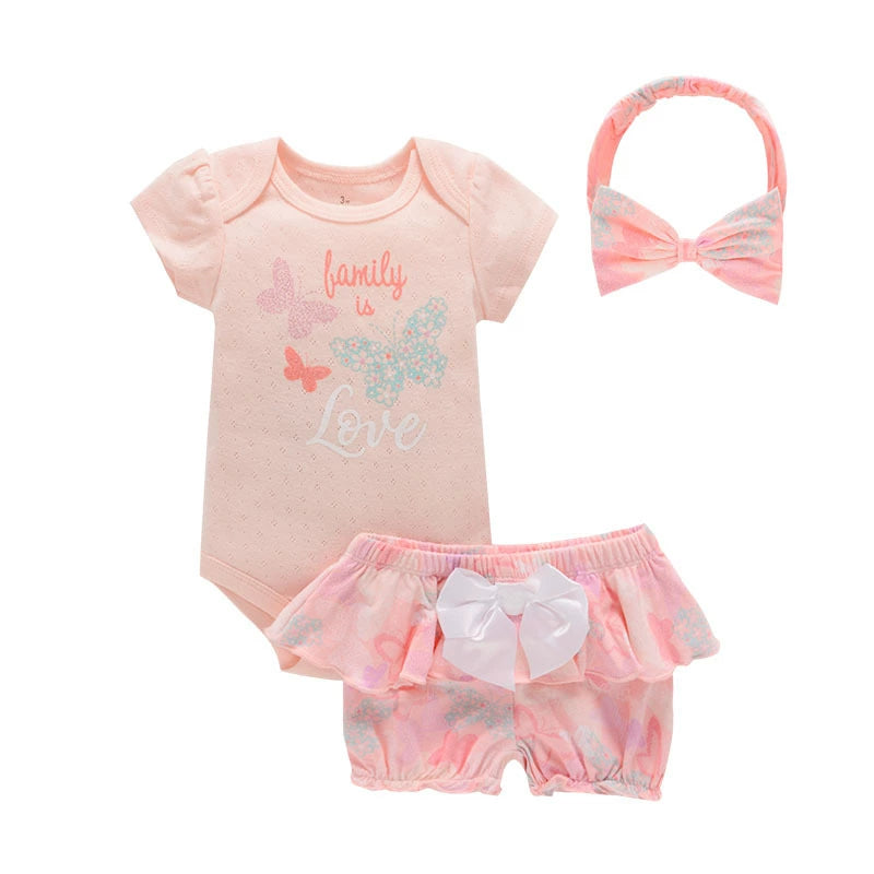 Completo Estivo Neonata Body, Bloomers e Fascia Coordinata
