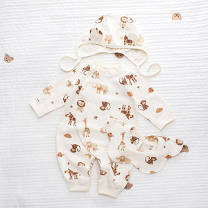 Coordinato Set Neutro Neonato/a Bimbo/ Bimba 3 pezzi – Safari in cotone