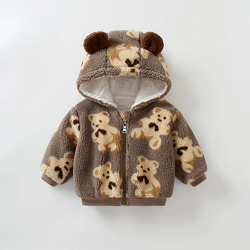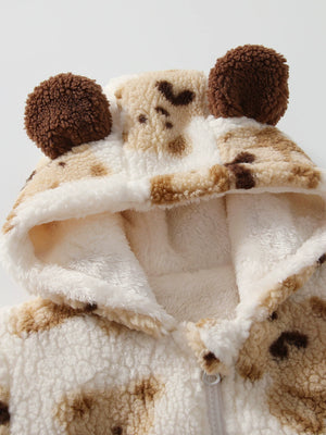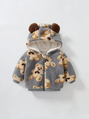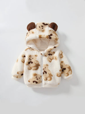 Riscalda le giornate del tuo bimbo con questa adorabile felpa in pile! Morbida, calda e super coccolosa, è decorata con una simpatica stampa di orsetti e un cappuccio con dolci orecchie 3D.