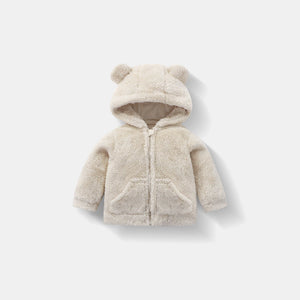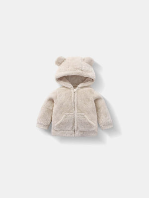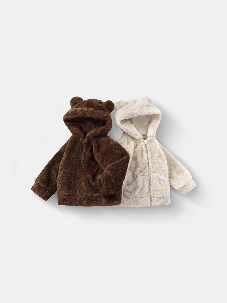 Un capospalla irresistibilmente tenero! Questa giacca in pelliccia sintetica ultra morbida è perfetta per tenere al caldo i più piccoli durante i mesi freddi. Il cappuccio con orecchie da orsetto aggiunge un tocco dolcissimo e divertente. Disponibile in due varianti colore: marrone cioccolato e panna, si abbina facilmente a qualsiasi outfit invernale.