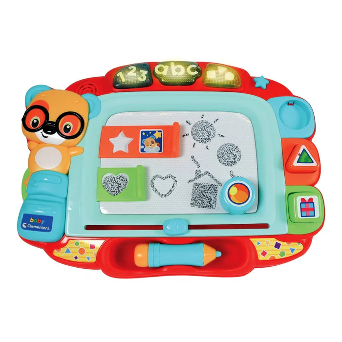 Una colorata lavagna per imparare a disegnare, ma anche un centro attività con canzoncine e filastrocche per scoprire i numeri, le lettere e le forme.