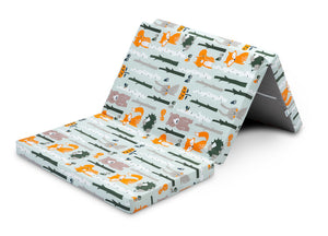 Il materasso si adatta alla maggior parte dei lettini da viaggio e tradizionali. Combina il comfort di un materasso per bambini standard con un peso e dimensioni ridotte. La fodera in cotone rimovibile è resistente ed estetica. Ogni modello si distingue con un motivo unico.
