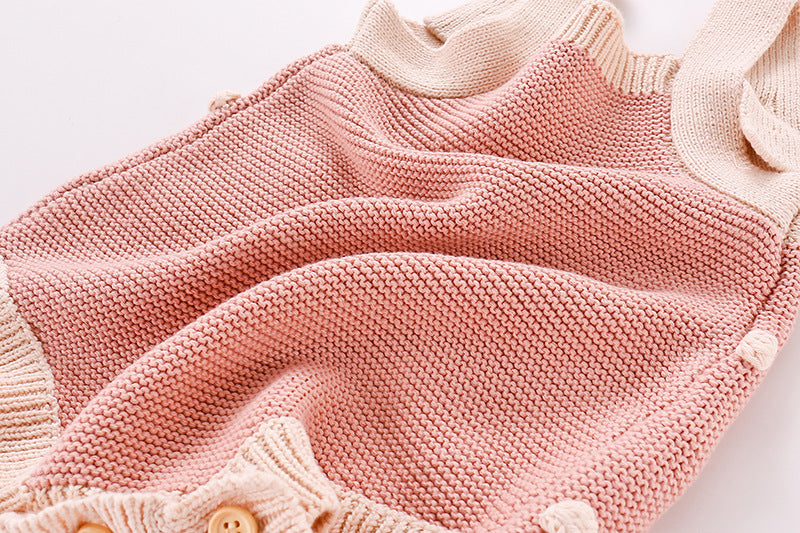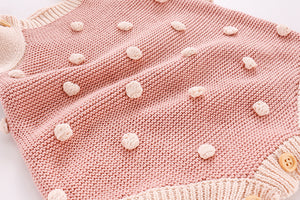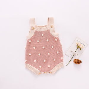 Pagliaccetto bimba in Maglia con Dettagli a Pois - Rosa e Beige