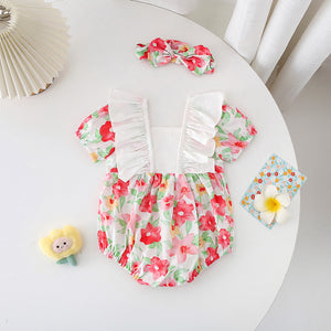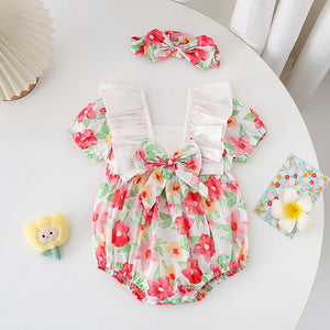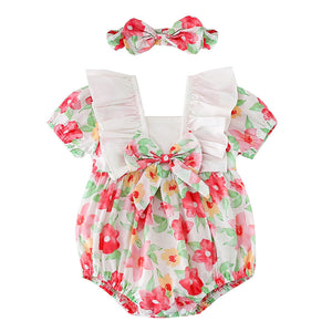 Pagliaccetto Estivo Floreale con Fiocco + Fascia Coordinata