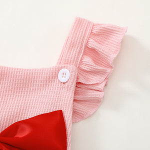 Pagliaccetto Estivo Rosa per Neonata con Fiocco Rosso e Fascia Coordinata